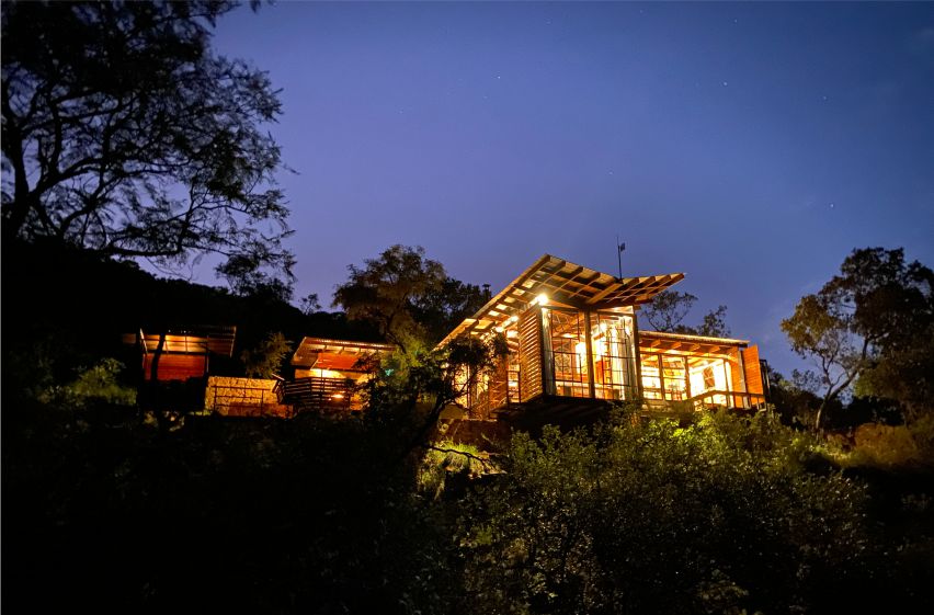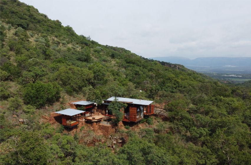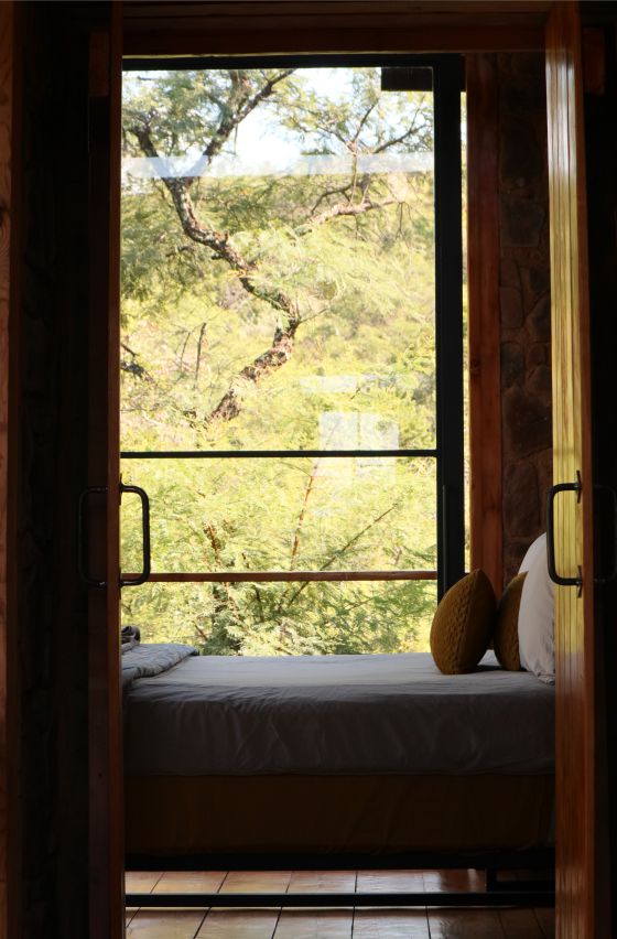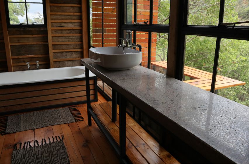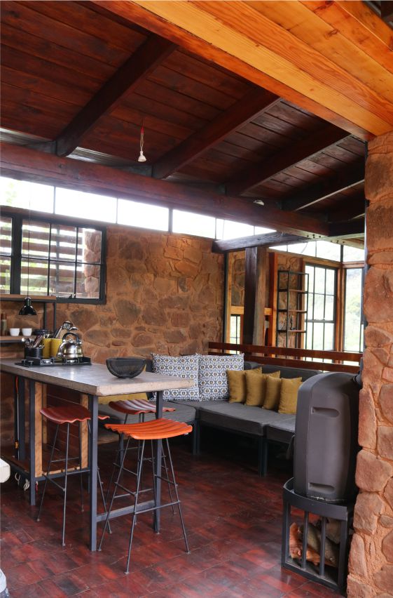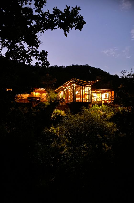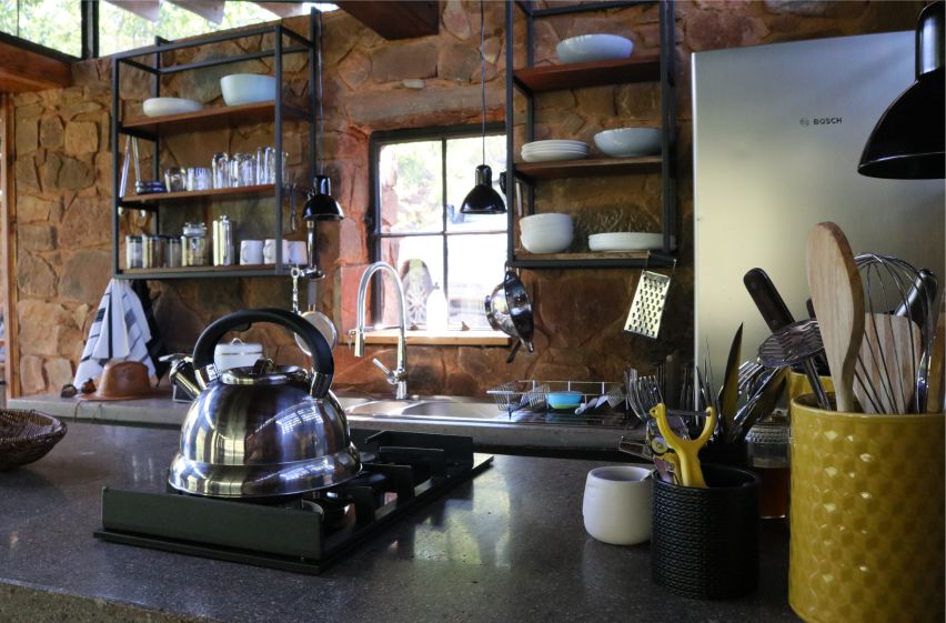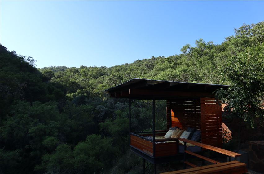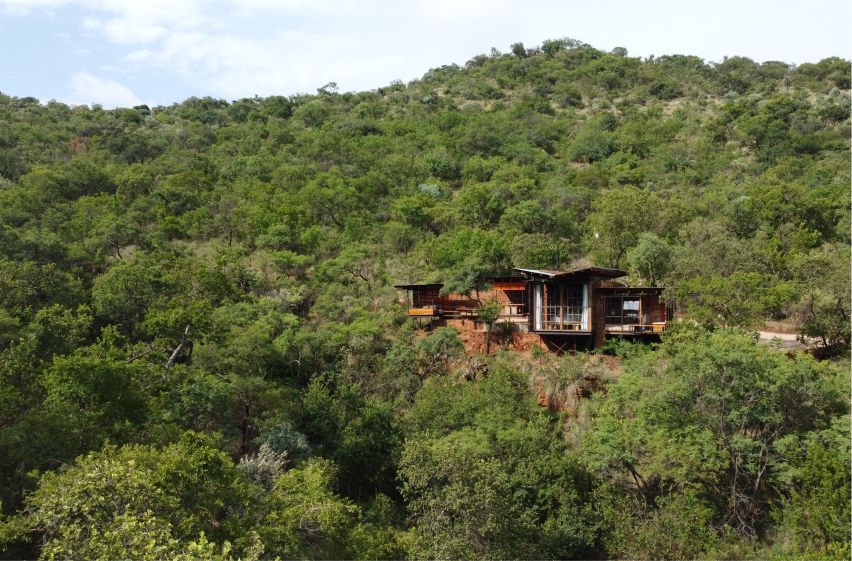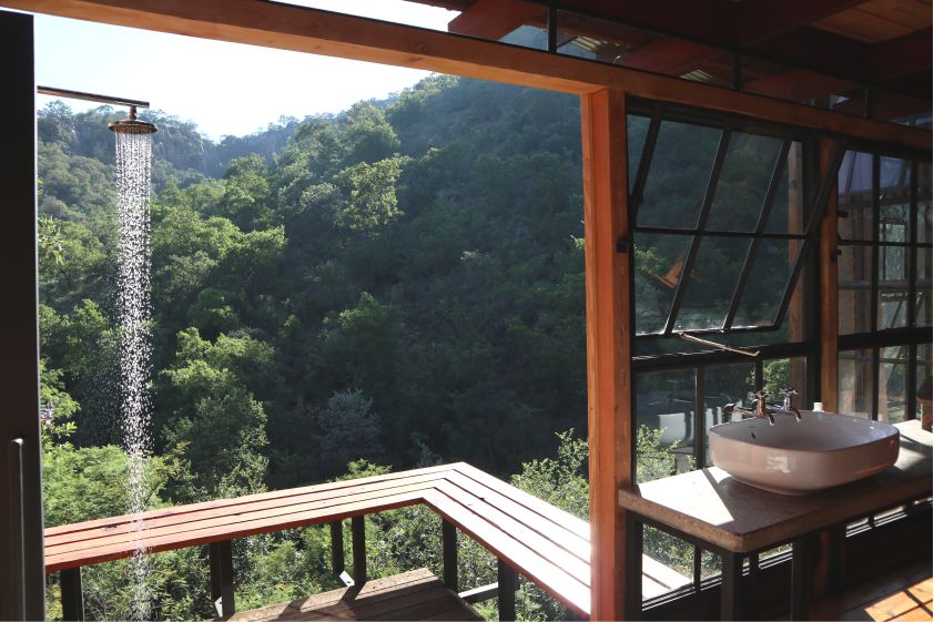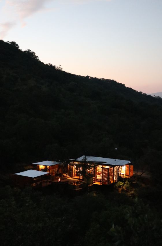 Situated on the edge of a secluded ravine, the Luna Cabin is meticulously woven onto the landscape. The cabin merges with the breathtaking natural surroundings of cliff faces and forest canopies above and below. It is an architectural celebration of spatial experiences with a reverence for the materials from which it is built. The spaces sequence themselves around a stone walled courtyard, each space giving different views and interactions to the encompassing nature: the daybed onlooking stunning views of the cliffs; the fire boma for the night’s starry skies; the raised outdoor covered dining veranda for all types of weather; the plunge pool which overlooks the koppie.
